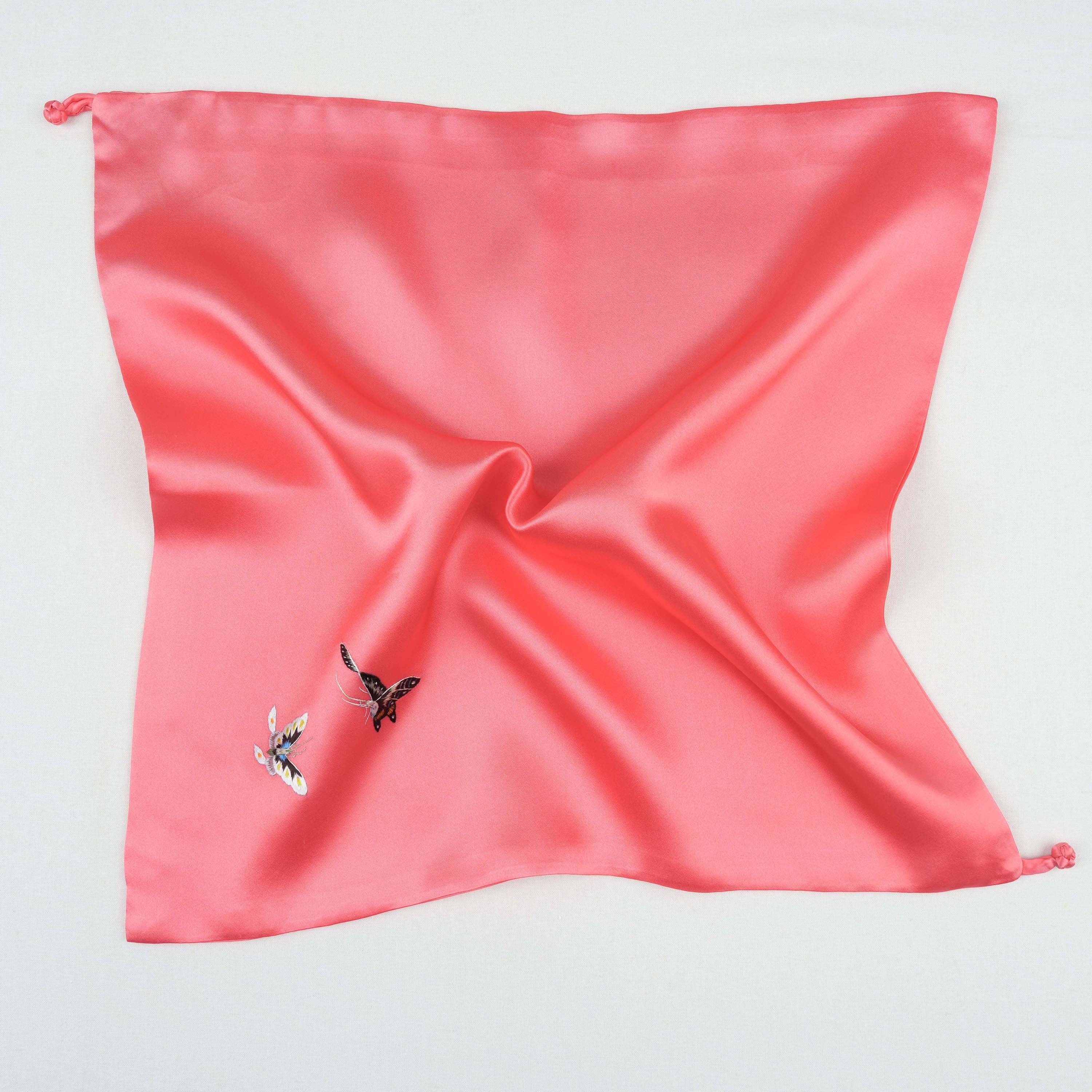 Materials & Size - 100% mulberry silk with hand-rolled hem. 35 × 35 cm. Colour/Finish: Cerise Red.